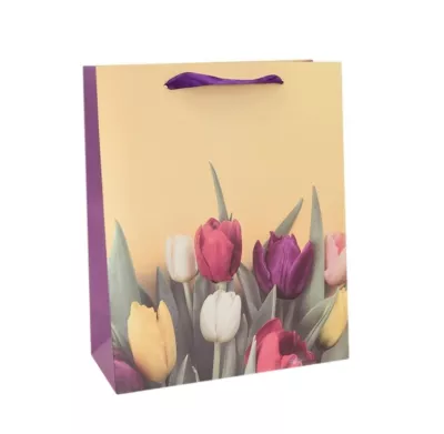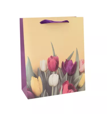Пакет бумажный "Тюльпаны" 32х26х12см