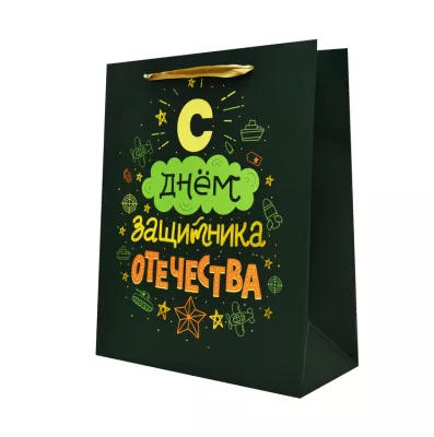 "23 февраля" Пакет бумажный "С днём защитника" 32х26х12см