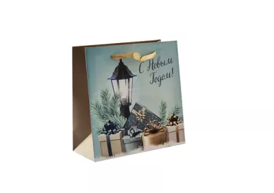 Пакет бумажный "Фонарь с подарками" 15х15х12см