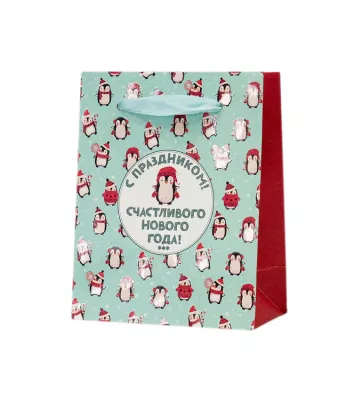 Пакет бумажный "Пингвинчики" 14х11х6см