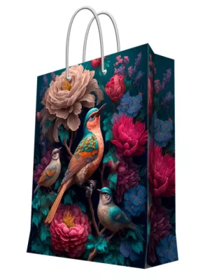 Пакет бумажный "Птица в цветах" 26х32,4х12,7см