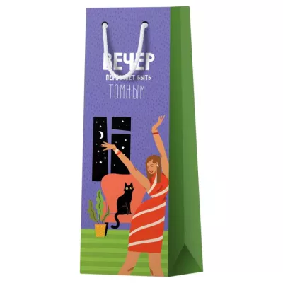 Пакет под бутылку "Вечер перестанет быть томным" 12х36х8,5см