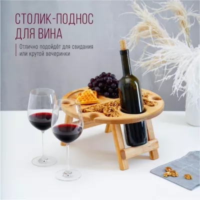 Столик-поднос для вина "Adelica" d=30см с менажницей на 2пер.