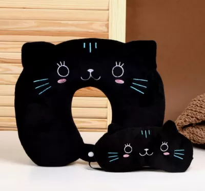 Подушка туристическая "Кошечка" 30х26см, с маской для сна