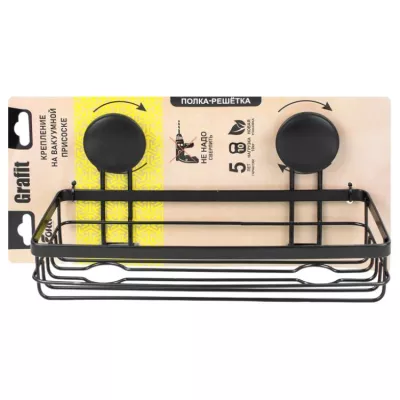 "GRAFIT" Полка для ванной на присоске 26х13,5х14см, цв.черный
