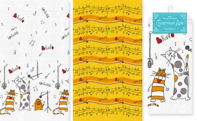 "Солнечный дом" Набор кухонных полотенец "Поющие коты" 2шт, 40х70см