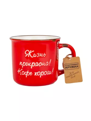 Кружка "Жизнь прекрасна! Кофе хорош!" 370мл, цв.красный