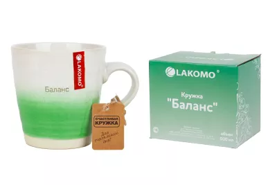 "Идиллия" Кружка "Баланс" 500мл, цв.белый с зеленым, в п.у.