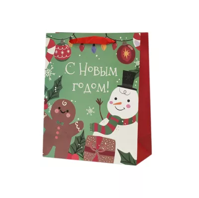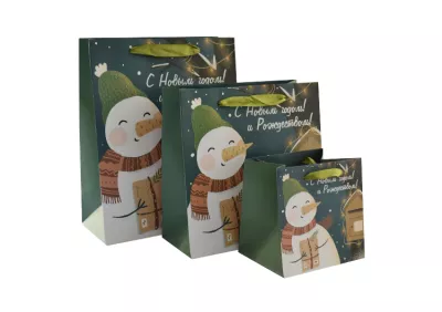 Пакет бумажный "Снеговик с подароком" 32х26х12см