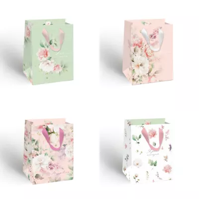 Пакет бумажный "Цветы" 11,4х14,6х6,4см, 4 дизайна