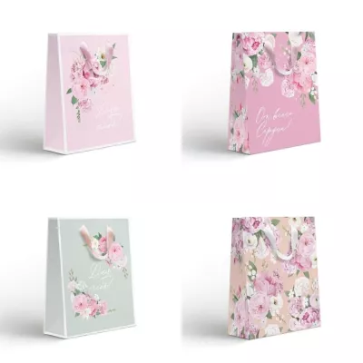 Пакет бумажный "Нежность" 18х22,7х10см, 4 дизайна