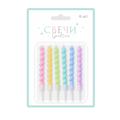 Свечи для торта "Волнистые" 6шт, цв. в ассорт.
