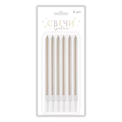 Свечи для торта "Стильные" 6шт, цв.металлик