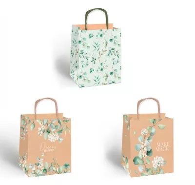 Пакет бумажный "Эвкалипт" 16х18х8см, 3 дизайна