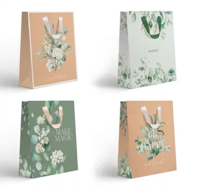 Пакет бумажный "Эвкалипт" 26,5х32х12,5см, 4 дизайна