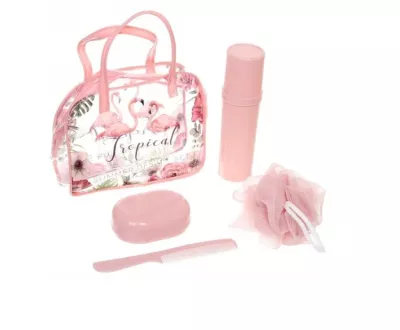 Набор банный дорожный "Traveler.Фламинго" 4пр.,цв.розовый