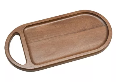 "Rock Grey" Доска сервировочная разделочная 38x13,8x1,4см, акация, овал, с метал.руч.