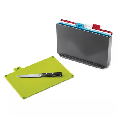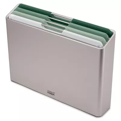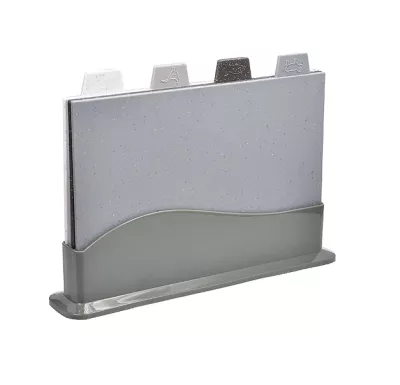 "JJ "Folio Large" Набор разделочных досок 4шт. 7,5х26х36см пласт., с подставкой цв.серебристый
