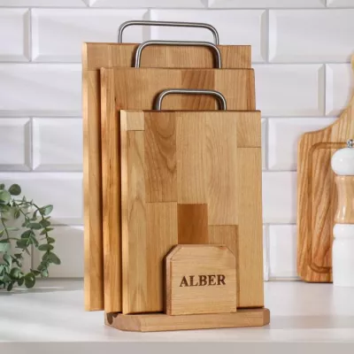 Набор разделочных досок "Круг" на подставке 2шт. с подставкой под горячее