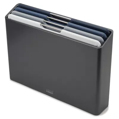 "JJ "Folio Large" Набор разделочных досок 4шт. 7,5х26х36см, пласт., с подставкой, цв.графит