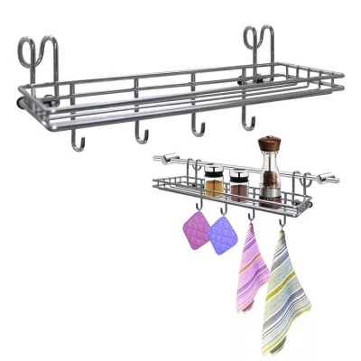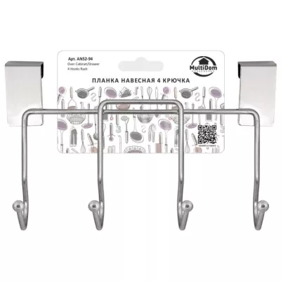 Полка навесная для специй с 4 крючками 25х9,5х10см