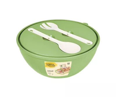 "Vanilla" Набор салатников с крышкой и приборами 5шт: 4х0,6л; 1х5л цв.фисташка