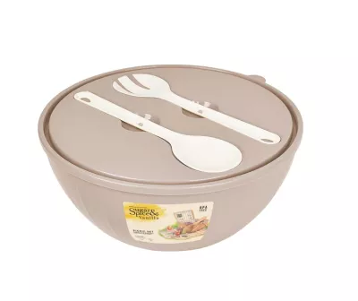 "Vanilla" Набор салатников с крышкой и приборами 5шт: 4х0,6л; 1х5л цв.латте
