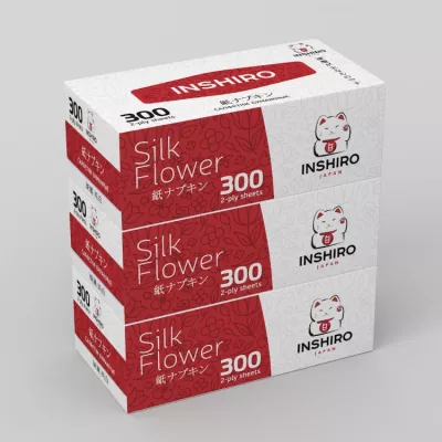 "INSHIRO"SilkFlower" Салфетки бумажные двухслойные "Japan" 300шт., цв.красно-белый