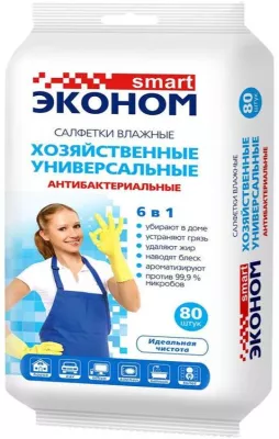 "Smart"Эконом" Влажные салфетки антибактериальные 6 в 1 для всей семьи 80шт.