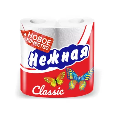 Туалетная бумага со втулкой "Нежная" 2 слоя, 4 рулона