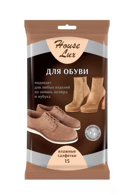 "House Lux" Влажные салфетки для обуви из гладкой кожи 15шт.