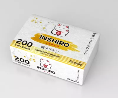 "INSHIRO"EkoNeko" Салфетки бумажные в мягкой упаковке, двухслойные 200шт.