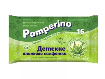 "Pamperino" Детские влажные салфетки с экстрактом алоэ вера 15шт.