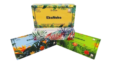 "INSHIRO"EkoNeko" Салфетки бумажные двухслойные "Tropical collection" 130шт.