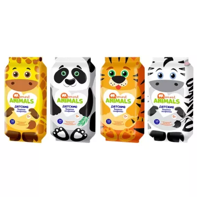 "Smart Animals" Детские влажные салфетки с ромашкой и витамином Е 50шт.