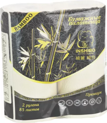 "INSHIRO"PurPure" Полотенца бумажные двухслойные "Bamboo" 2 рулона, 85 листов