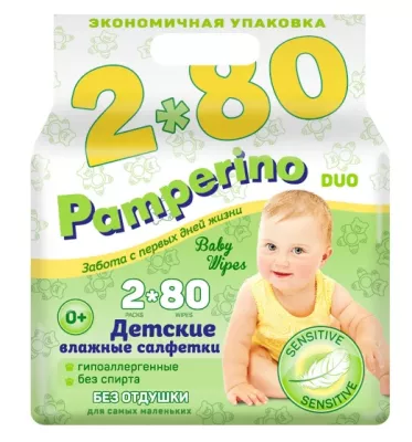 "Pamperino"Duo" Детские влажные салфетки без отдушки 80шт., 2 уп.