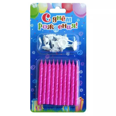 Набор свечей "Тортовые" 10шт, цв.розовый