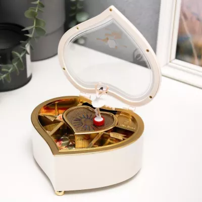 Шкатулка музыкальная "Сердце белое" 15,5х14х7,5см