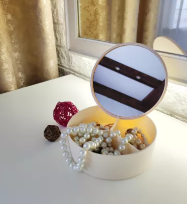 Шкатулка ювелирная с зеркалом d=14см, цв.бежевый