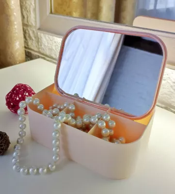 Шкатулка ювелирная с зеркалом d=14см, цв.розовая