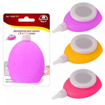 Шприц кондитерский 3 насадки, 90мл, 3цв.