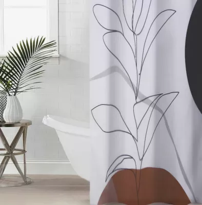 Штора для ванной "Черно-белые листья" 180х180см