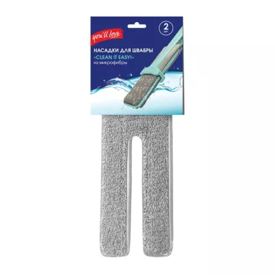 "You'll love"CLEAN SPACE" Набор насадок для швабры из микрофибры 2шт, 43х13,5-41х12,5см