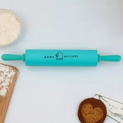 Скалка "Дома вкуснее" 31х4,2см, цв.бирюзовый