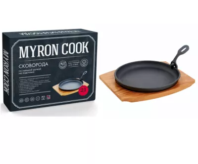 "MYRON COOK" Сковорода чугунная 21см, съемная ручка, дерев.подставка