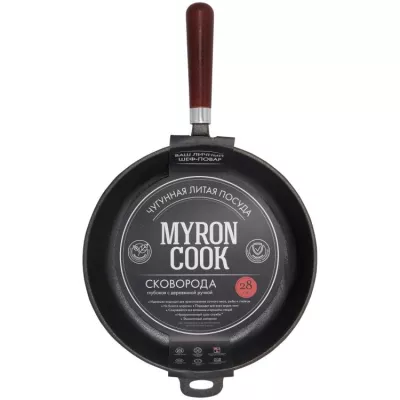 "MYRON COOK" Сковорода чугунная 28 см глубокая h 6см, дерев.ручка