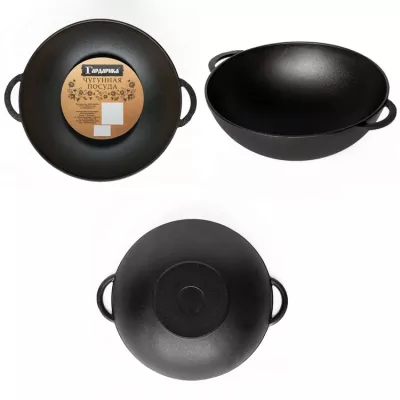 "Гардарика" Сковорода WOK чугун, 26 см, с 2мя ручками без крышки