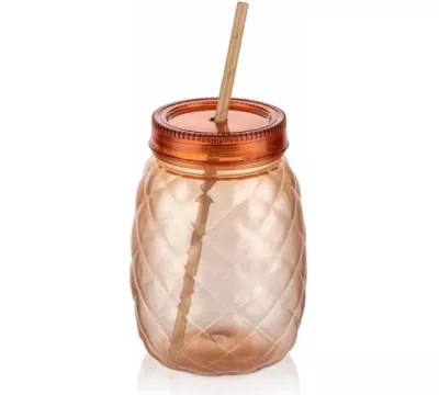 Стакан "Pineapple" с крышкой и трубочкой 600мл, цв.коричневый