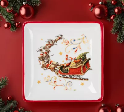"Сани Деда Мороза" Блюдо сервировочное 24,5х23,5х3,5см, цв.белый